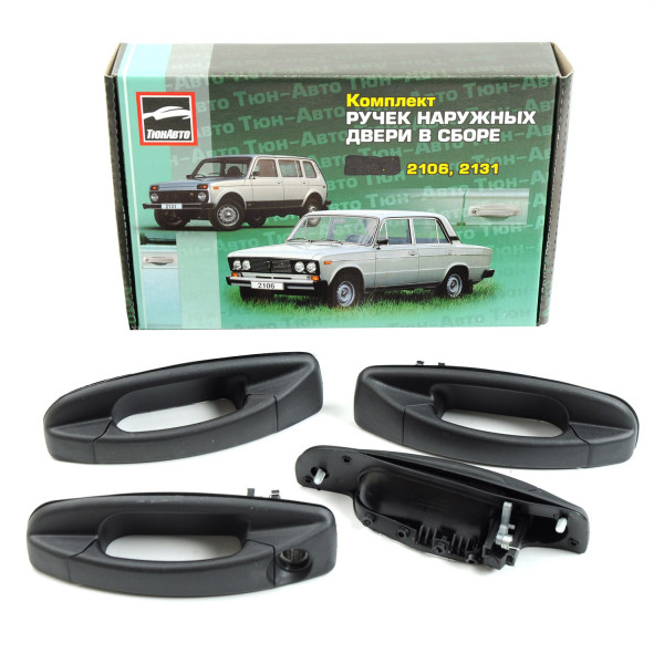 Ручки двері зовнішні в зборі 2101-2106/2121(NIVA 5D)чорні,пластик "ТЮН-АВТО"(4шт)