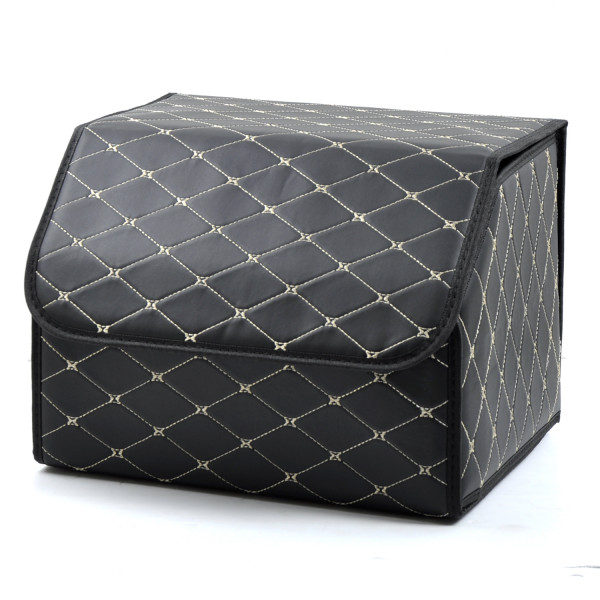 Саквояж-органайзер у багажник 400х300х250мм Чорний ромб шкірзам,біла нитка