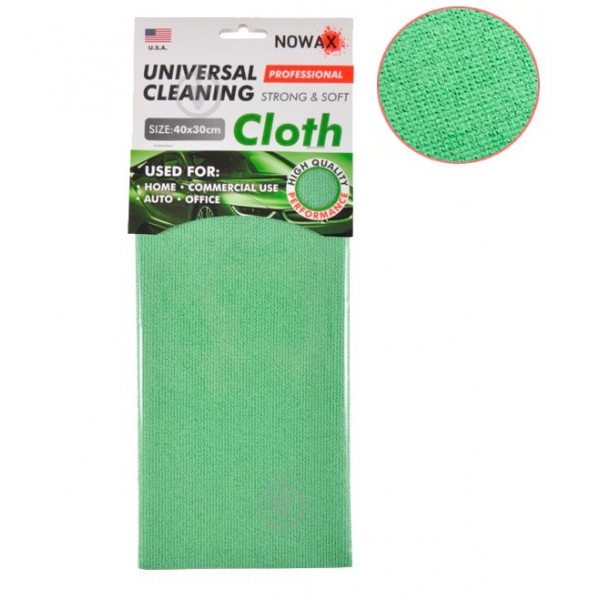 Серветка професійна 40х50 для скла та кузова "Nowax NX64451" зелена (прогумована)