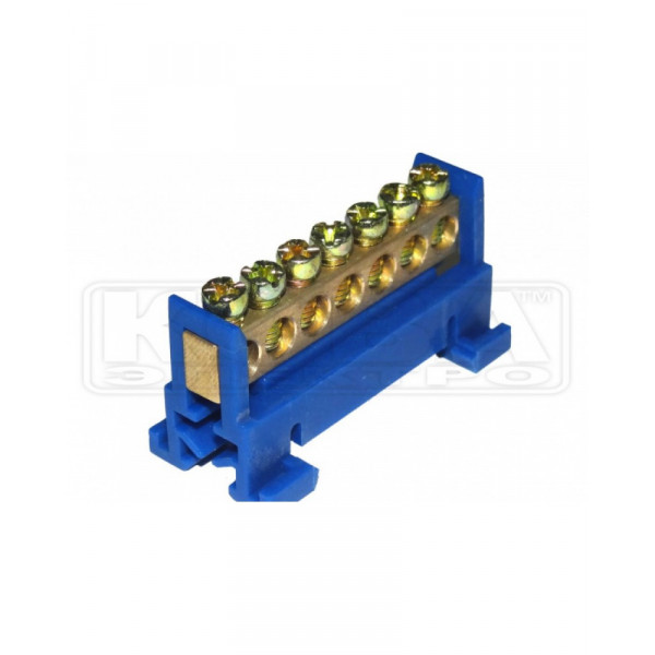 Применяются в щитовом оборудовании для соединения нулевых рабочих (N) и нулевых защитных проводников (PE). Состоит из двух частей: - латунная колодка с болтовыми контактными зажимами; - пластиковое основание для крепления колодки на монтажной рейке.