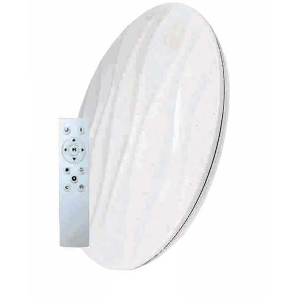 Светодиодный управляемый накладной светильник в форметарелки, мощность 72W, цветовая температура 3000-6000К (от теплого белого додневного света). Модель выполнена вбелом цвете. Накладной светодиодный светильник, имеющий рассеивательсо специальным покрытием, создает красивое освещение с эффектом «звездногонеба». Модель имеет дистанционный пульт управления, что позволяет переключатьрежимы, включать и выключать устройство в любом месте комнаты. Светильник имеетфункцию регулирования цветопередачи, что позволяет создать наиболее приятноеосвещение, индивидуально для каждого пользователя. Устройство выполнено всовременном и стильном дизайне, что обеспечивает его сочетание с любыминтерьером помещения. Светодиодный накладной светильникиспользуется для интерьерного освещения всех видов жилых и муниципальныхпомещений, гостиниц, приемных, офисов и холлов.
