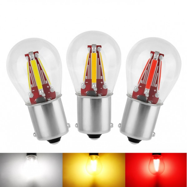 Світлодіод 12-24V Т25 Білий COB 4чипа 18SMD 3W 780Lm У скляній колбі №39