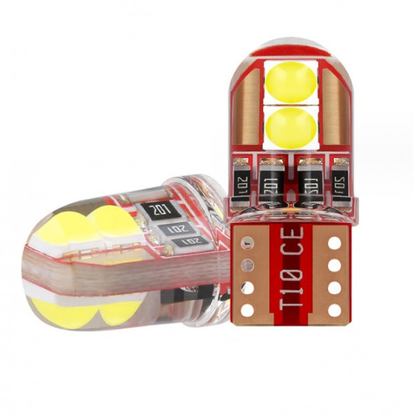 WHITE T10 W2,1x9,5d 12V-4SMD-3030-Crystal (силикон) мультиполярный с обманкой