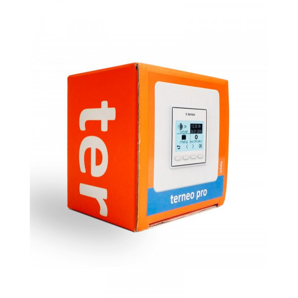 Terneo PRO - кнопочный программируемый терморегулятор. Используется для управления теплыми полами всех типов, в том числе кабельными, пленочными, стержневыми и так далее. Имеет встроенный датчик температуры воздуха и выносной датчик температуры пола.
