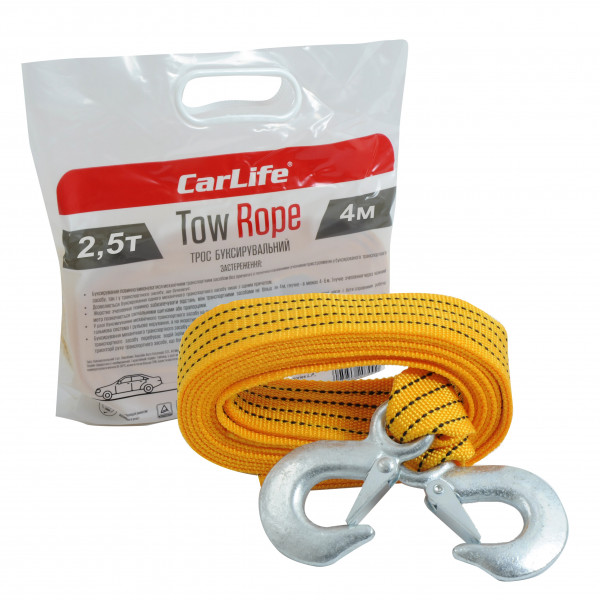 Трос буксирувальний 2.5т 4,0м 44мм/гаки/помаранч./Пакет-РЕ "Carlife" TR-703P