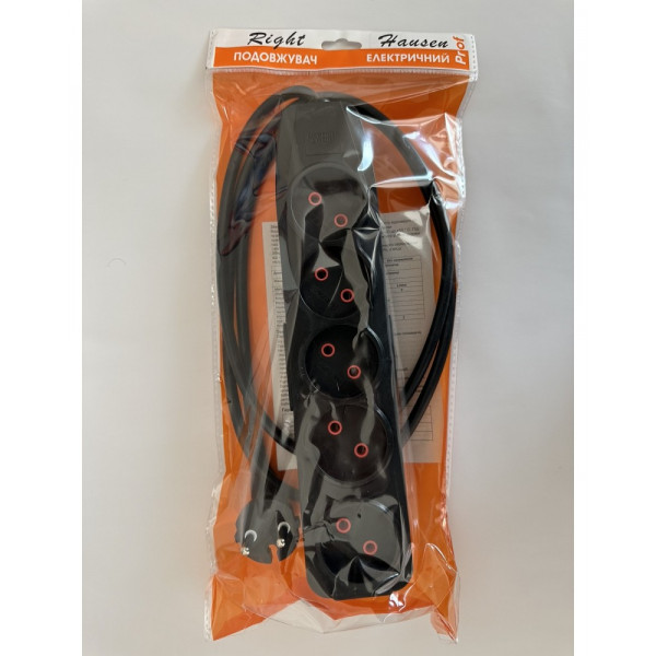Удлинитель RIGHT HAUSEN 5 разъемов/3 м ЧЕРНЫЙ