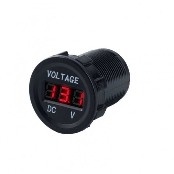 Вольтметр врізний круглий 12-24V червоний дисплей, 28*37*мм A27-1 RED