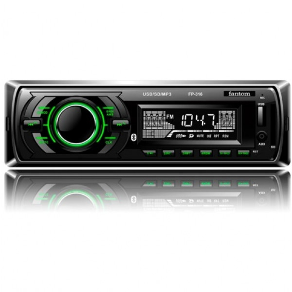 Автомагнітола Fantom FP-316 (Black/Green)/USB/SD//посил. кач.звука/Bluetooth 4x50W