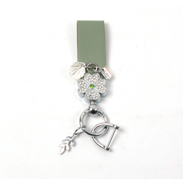 Брелок на ключі шкіряний Клевер (пакет+ викрутка) Зелений