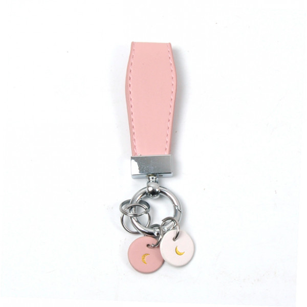 Брелок на ключі шкіряний Місяць та зірка (пакет+ викрутка) Рожевий