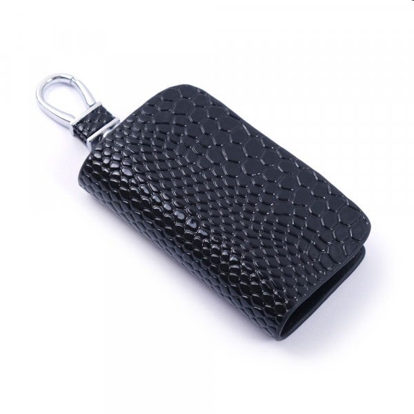 Чохол для ключів з карабіном Зміїна чешуя (Екошкіра) чорний