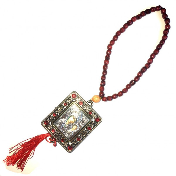 Чотки на 33 намистини дерев'яні з іконою 6х7см (образ з двох сторін) (розм.18см довжин.чоток,/D 0,7с