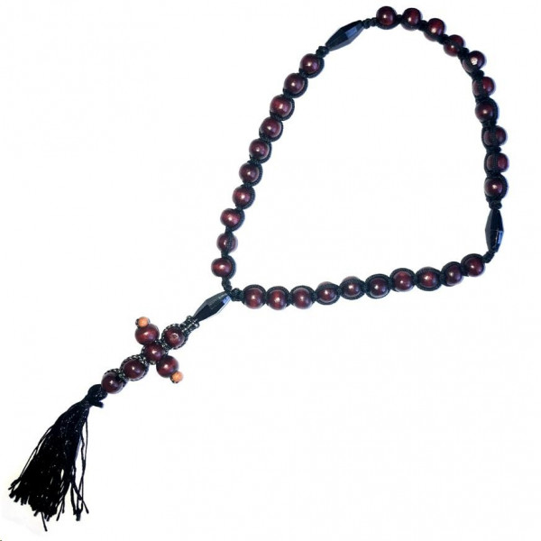 Чотки на 33 намистини плетені дерев'яні з хрестиком (розм.24см довжин.чоток,/D 1см)