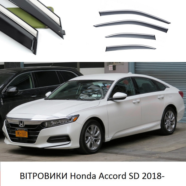 Дефлектори вікон Honda Accord SD 2018- П К "FLY""молдинг із нерж.сталі 3D"BHDAC1823-W/S(168)