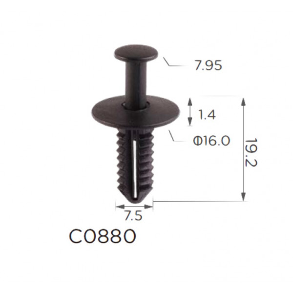 Фіксатор C0880 натискний/розпірний MERCEDES (A1249900492, 1249900492, 11835) ( уп. 100 шт.)