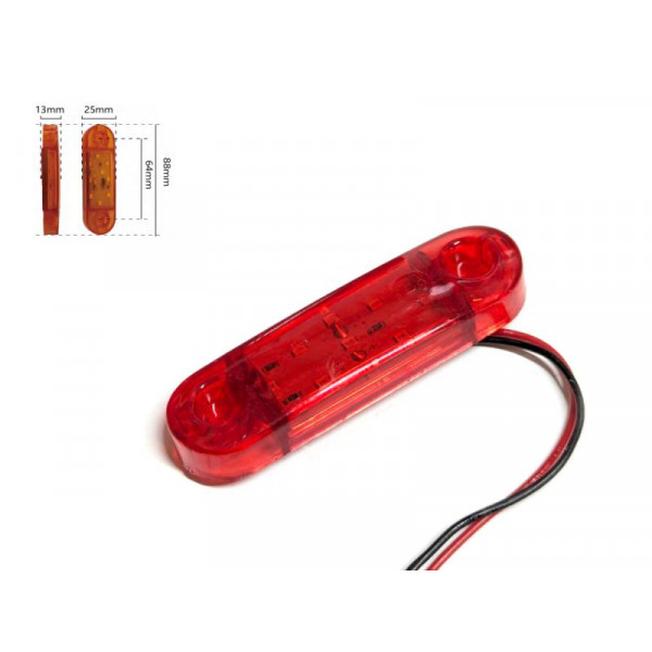 Габарит - червоний - 88х25мм - 12/24V Led 9 діодів - BD-0016R (2шт)