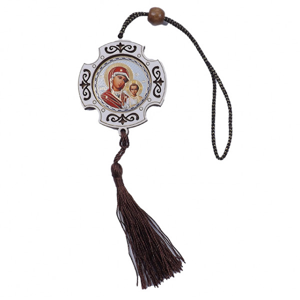 Ікона оберіг на нитці на дзеркало заднього виду Божа Матір круг дерево (5,6*6,5см)