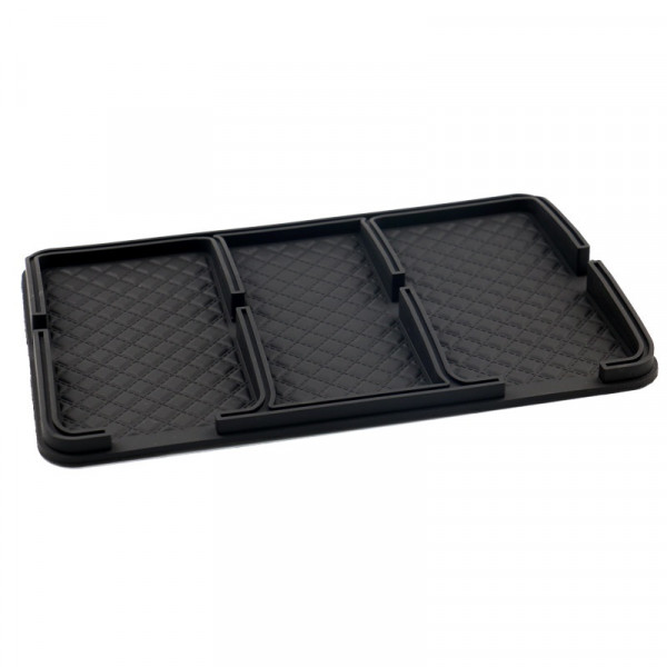 Опис: Матеріал: Високоякісний ПВХ, термостійкий, водонепроникний, зносостійкий та довговічний. Липкий нековзний килимок: Підходить для зберігання телефонів, парфумів, ручок, ключів та інших дрібниць, робить салон вашого автомобіля організованим. Легко миється: Покладіть його на приладову панель автомобіля, можна прати та використовувати багаторазово, просто використовуйте чисту воду для миття або протирання. Багатофункціональний: Підходить для використання в усіх типах автомобілів, також можна використовувати у ванній кімнаті, кухні чи офісі тощо. Специфікація: Розмір виробу: 25 см x 16 см Матеріал: ПВХ Пакет включає: 1 протиковзка накладка на приладову панель автомобіля