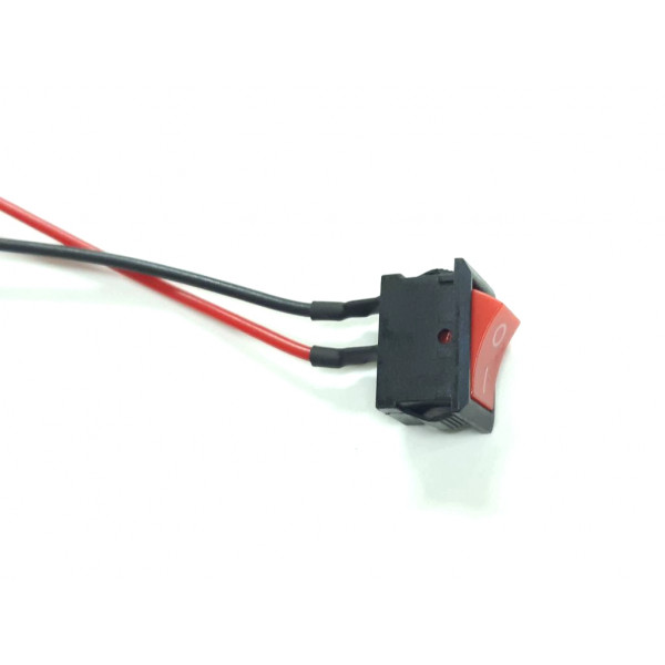 Клавіша №107 червона прямокутна 2кт. 2полож. On Off 12V + дроти 15см