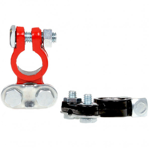 Клеми акумуляторні латунь 2шт "Alca" Євро чорно-червоні 509100 прямі (вага 342г)