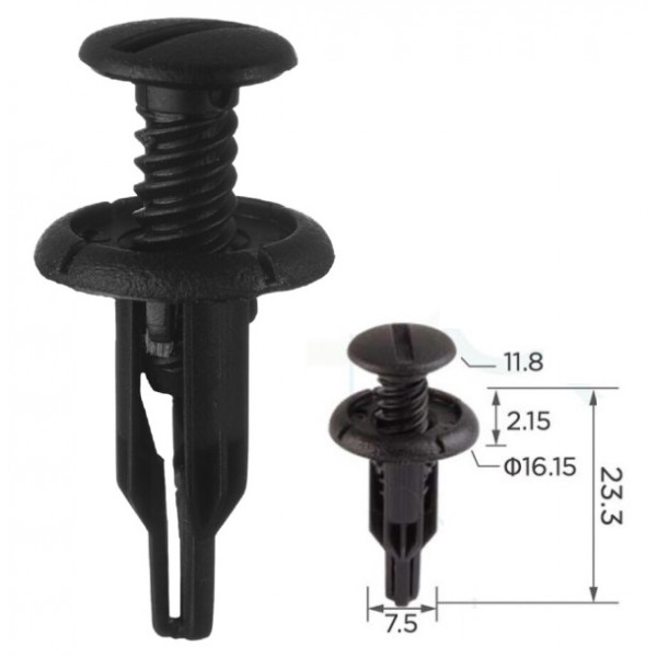 Кліпса C0339 обшивки Honda 91561S84A21ZA T=16.4, D=11.8, F=7.5, H=23.3 Применение: Кузов Багатоцільовий Для моделей: Honda Mazda Mitsubishi Nissan Suzuki Toyota OEM 91561S84A00M1, 91561-S84-A00-M1, 91561-S84-A21ZA, 91561S84A21ZA, 91561-S84-A21Z, 91561S84A21Z, 1108