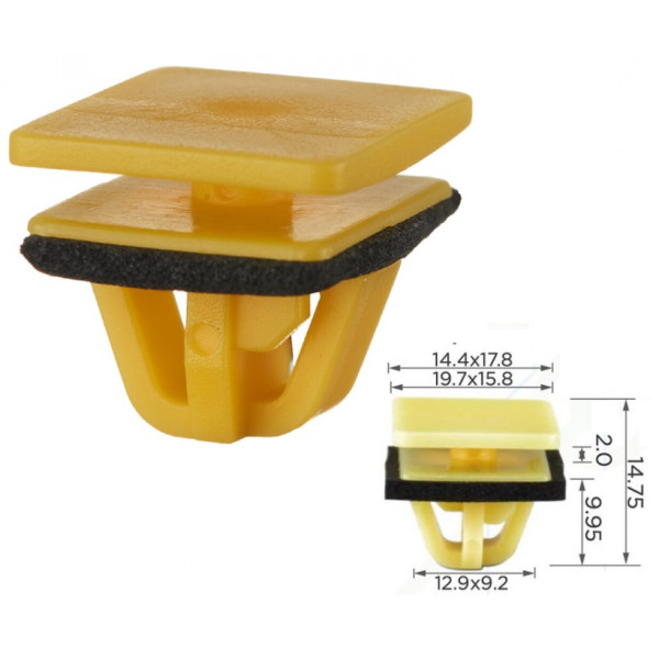 OEM: 877583D000 8775839000 T=19.8*15.9, D=18.0*14.4, H=14.8, F=13.2 Используется для крепления молдингов порогов, внутренней отделки багажника Acura Daewoo Honda Hyundai Accent Elantra H1 Santa Fe Sonata (2001 - 2006) Tucson Много моделей Kia - Багато моделей Renault - Багато моделей