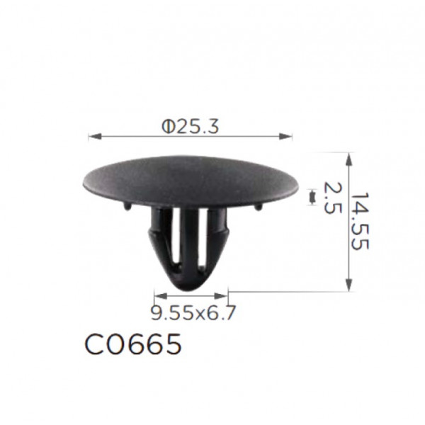 Кліпси C0665 обшивки капота / тепло-шумоізоляція Toyota 90467-09050 90467-09118 (уп.100шт)