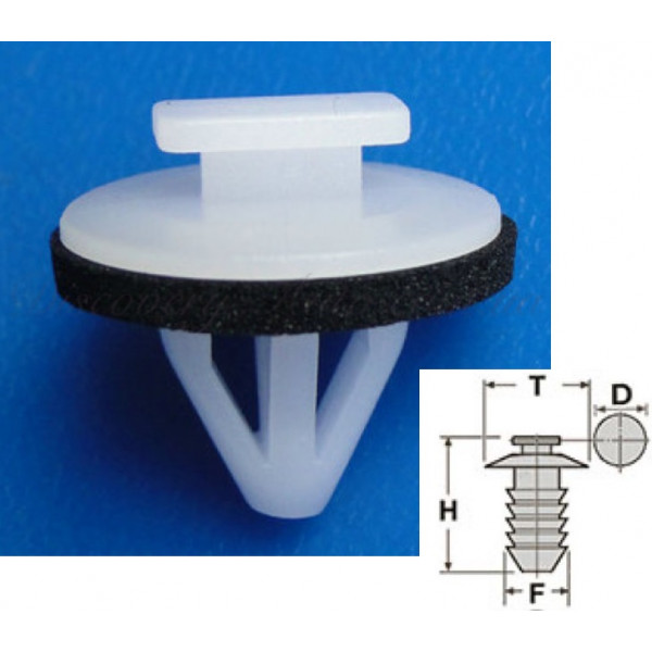 OEM: Toyota 75395-0T010 ( 753950T010 ) D=10.0*5.0, T=17.9, H=17.8, F=10.3 Используется для крепления накладки порога Toyota Venza (2008-2013) Venza (2013-) Corolla (2006-2013)