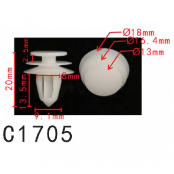 Кліпси C1705 обшивка дверей, молдинг NISSAN, TOYOTA, HONDA, KIA, RENAULT, SUBARU ( уп. 100 шт)