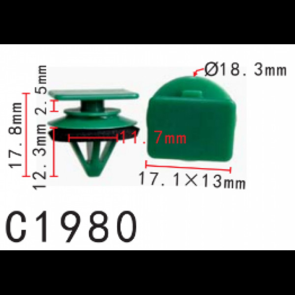 Кліпси C1980 обшивки карти дверей/молдингиMAZDA (D10E-51-SJ3, D10E51SJ3, 15244)( уп. 100 шт)