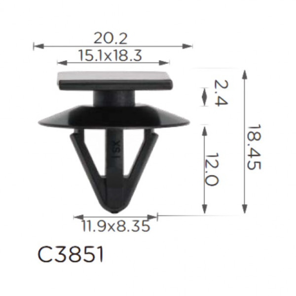 Кліпси C3851 молдингу,решітки радіатора KIA (0K56B50CB3) ( уп. 100 шт.)