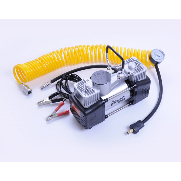 Для автолюбителя, важна удобная и безопасная эксплуатация автомобиля. По разным причинам давление в автомобильных шинах становится меньше нормального уровня. Иногда, даже покупка дорогой и качественной резины не страхует от прокола шины, или от факта, что рано, или поздно сжатый воздух может начать проникать через стенки покрышки. Каждый автомобилист должен знать как справится с этой головной болью. Поэтому автомобильный компрессор Elegant Force Maxi 100 090 - является неотъемлемой вещью в транспортном средстве. Именно он поможет избежать случайных пробитий или спустившего колеса. Компрессор фирмы Elegant имеет способностью нагнетать до 10атмосфер (кг/см2), что позволит без проблем поднять давление в шинах до необходимого уровня. Также он довольно быстро накачает ваше колесо R15 всего за пару минут, этому способствует производительность самого в 60л/минуту. Двухпоршневой компрессор, оснащен аналоговым манометром ориентируясь на его показания вы с легкостью сможете поднять давления до рекомендуемого. В комплекте также идет долгий кабель питания (3м) от клемм АКБ, прочный шланг (7м), что позволит доставлять прибор до каждого колеса. На корпусе защитный металлический каркас, ручка довольно широкая и имеет резиновое покрытие для удобства захвата. Комплект поставки:• Компрессор с высокоточным манометром• Медный кабель питания 3м• Прочный резиновый шланг 7м• Зажимы АКБ с предохранителем• Комплект адаптеров• Сумка из непромокаемого материала для удобного хранения и перевозки.