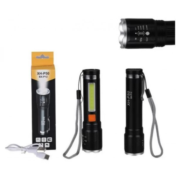 Ліхтарик-ручний АКБ вбудований,діод P50+COB,MICROUSB, довж.-14см,метал. корп." XH-P50 BX-P12