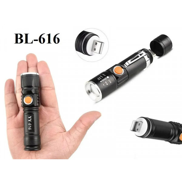 Тактичний ліхтар POLICE BL-616-Т6 300 Lumen USB Малогабаритний металевий ліхтар з одним головним потужним світлодіодом. Працює від вбудованого акумулятора. Заряджання від порту USB. Алюмінієвий корпус. Кнопка перемикання режимів міститься на корпусі фонаря. Ліхтар має кліпсу для кріплення на одяг. Характеристики: Довжина: 110 мм (100 мм zoom) Діаметр лінзи: 20 мм Світло: Холодний білий Зумування світлового потоку: Є (механіка) Режим "Стробоскоп": Є Колір: Чорний Живлення: USB 5V Джерело живлення: перезарядна, вбудована АКБ Кліпса для кріплення на одяг.