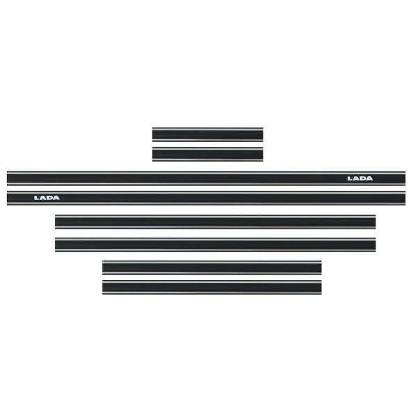 Sahler SH506 - комплект молдингов дверей на ВАЗ 2101-2106 от турецкого производителя качественных автоаксессуаров Sahler. Молдинги на двери автомобиля не только украсят, но и защитят Ваш автомобиль от царапин. Молдинги выполнены из качесвенной резины, и если кто то на парковке случайно резко откроет дверь и заденет Ваш автомобиль, то резина примет удар на себя, а лако-красочное покрытие останется в сохранности. Особенности и характеристики товара: Ширина молдинга - 30 мм Креление: качественный двусторонний скотчем (наклеен на заводе с обратной стороны молдингов). Цвет - черный Молдинг украшен двумя хромированными полосками Материал - резина Полный комплект молдингов из 8-ми элементов на двери и на крылья автомобиля. На молдингах есть надпись Lada Длина упаковки 100 см