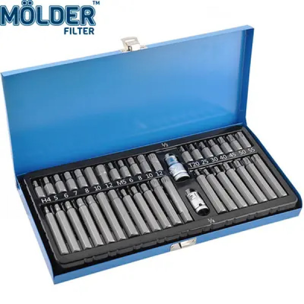 Набір біт 6гран і зірок 40од. (H4-12/T20-55/М5-12-кор/дл+2держ1/2-3/8) "Molder" (МТ68040) (мет.кейс)
