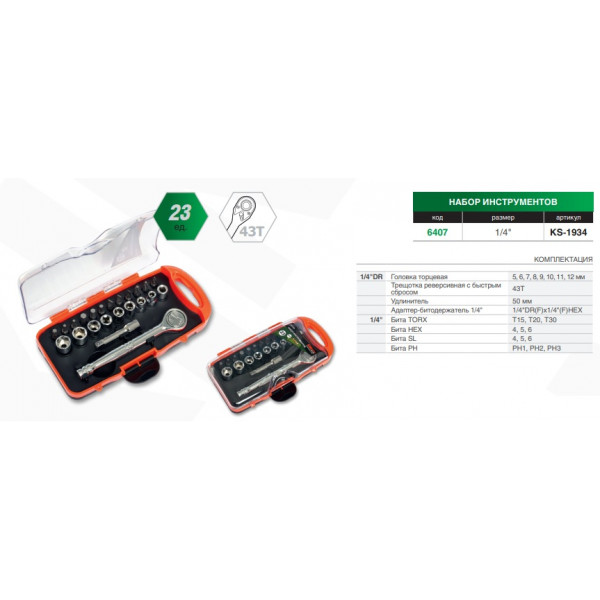 Набір інструментів 23од. 1/4" "KING STD" (KS-1934) (6шт/ящ)