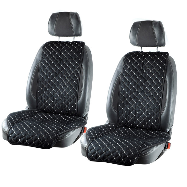 Накидки сидінь "Алькантара" "NEW" Чорна - Сіра нитка стьобані ромби (1+1) Передні