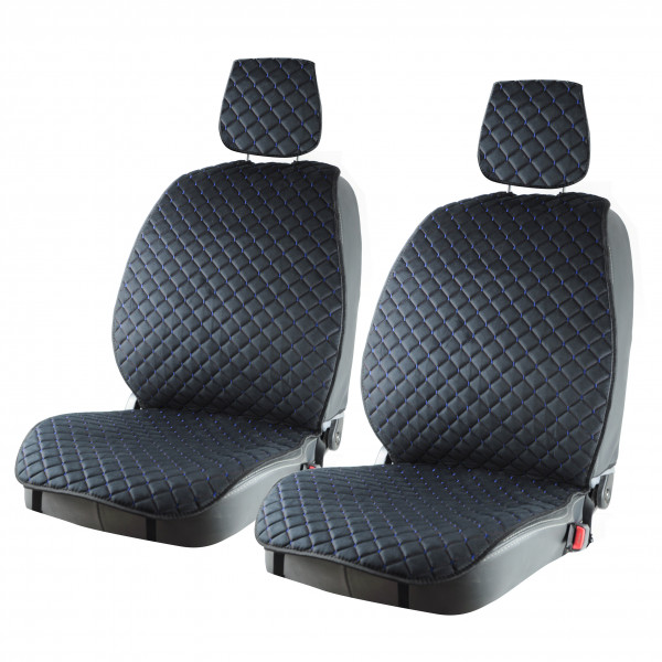 Накидки сидінь "Алькантара" "PREMIUM DEKOR" Чорна - Синя нитка 1+1 (2 Підголовника)