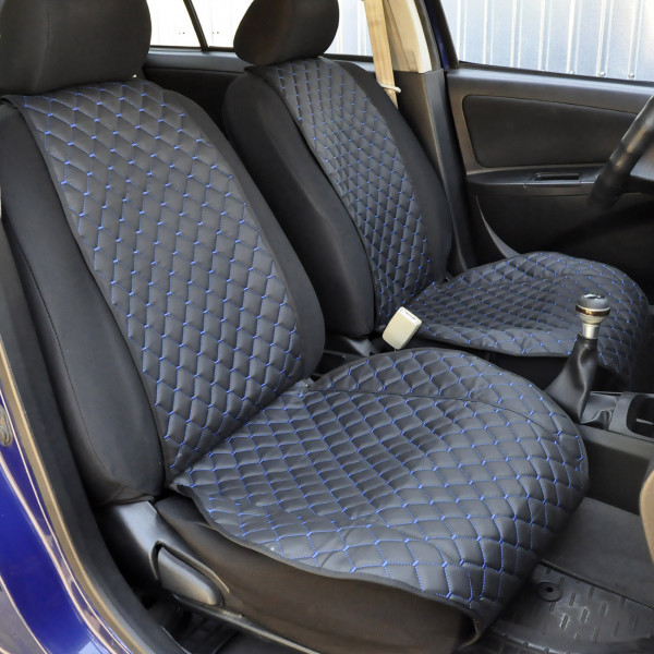 Накидки сидінь "Шкіро-замінник Чорний" Сині Ромби Передки (1+1) в Сумке с замком