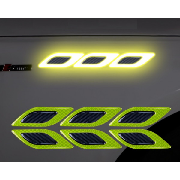 Наклейка відбивач катафот 2шт люмінесцентна на крило автомобіля Жовта "Квадрати"