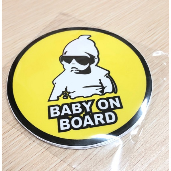 Наліпка Попереджувальна "Дитина в авто" "Baby on board" жовтий фон 12см