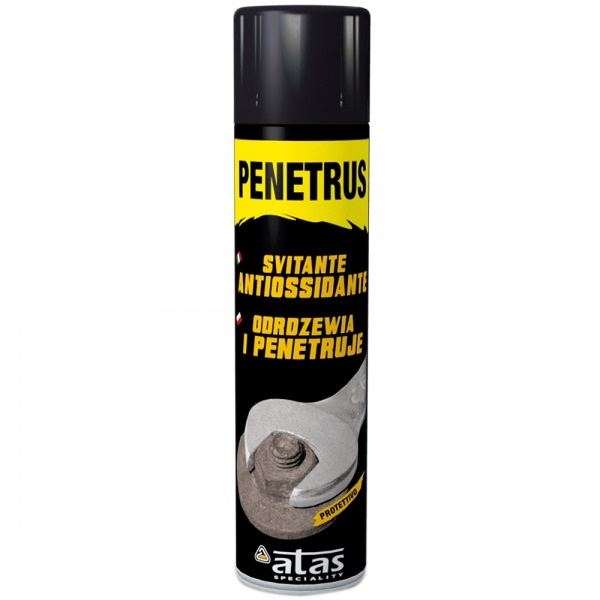 ATAS PENETRUS - універсальне проникаюче мастило - "рідкий ключ". Засіб розблокує гвинти, болти та інші механічні деталі, які не використовувалися довгий час або заржавіли. Проникає в застарілі механізми, змащуючи їх, усуває тертя та скрип шарнірів, замків, ланцюгів, перешкоджає їхньому блокуванню навіть у мороз. Знежирює та очищає, розчиняючи застарілі залишки олії та бруду. Антикорозійний засіб перешкоджає появі іржі навіть за наявності високої вологості, морської води та солей. Засіб рекомендований для захисту затискачів батарей, бобін, датчика-розподільника та, в цілому, електричних деталей. Має водовідштовхувальний ефект, отже відновлює електричні контакти. Не псує провідність.
