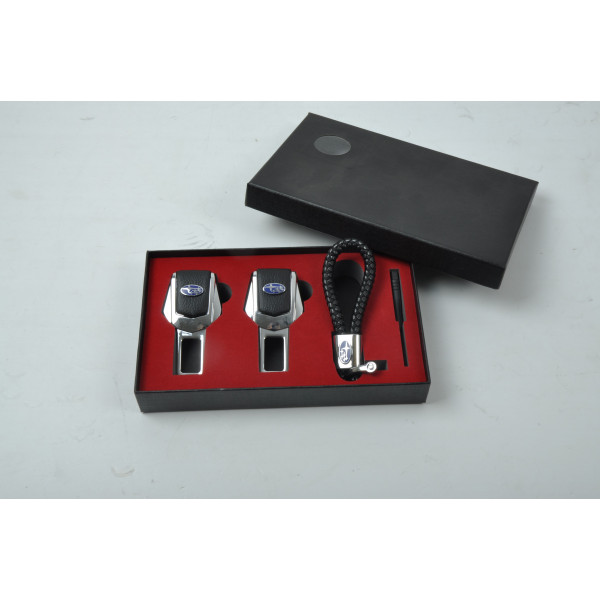 Подарунковий набір SUBARU 2в1 (фіксатор ременів, плетений брелок) №2 хром