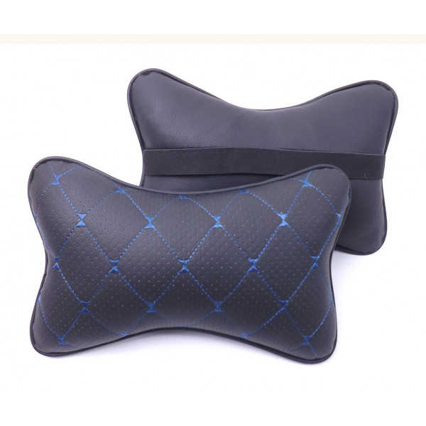 Подушка на підголівник еко-шкіра чорна + перфорація Ромб синій + кант (2шт/к-кт)