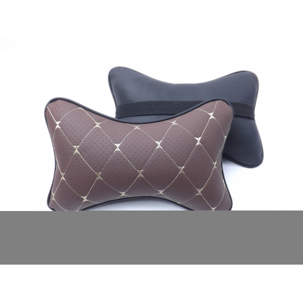 Подушка на підголівник еко-шкіра коричнева + перфорація Ромб золотий + кант (2шт/к-кт)