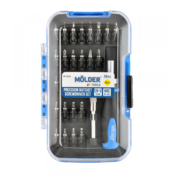 Викрутка для точних робіт реверсивна з комплектом насадок 26в1 (+/-/T/H/PZ) "Molder" (МТ32328)