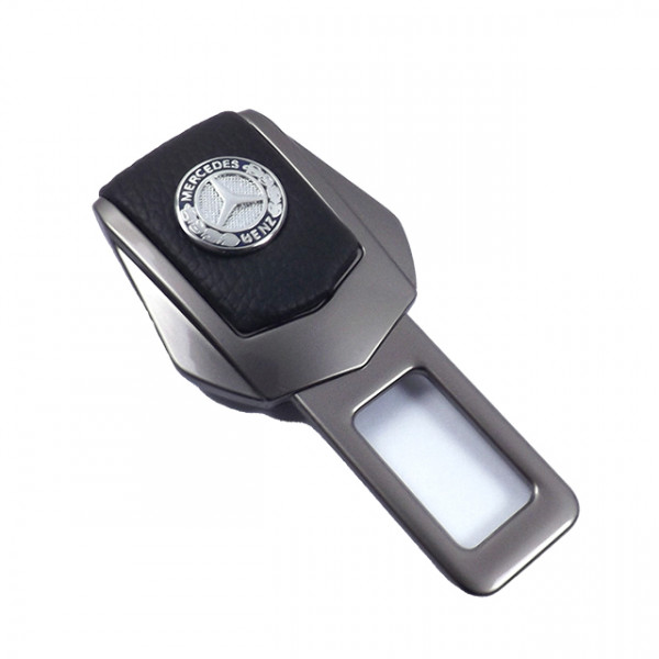 Заглушка ременя безпеки метал "Mercedes" (1шт) цинк.сплав + шкіра (тип №2) ГРАФІТ