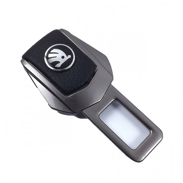Заглушка ременя безпеки метал "Skoda" NEW (1шт) цинк.сплав + шкіра (тип №2) ГРАФІТ