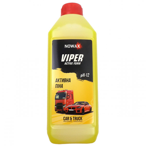 Активна піна NOWAX VIPER Active Foam NX01142 1 л Суперконцентрований професійний засіб преміум класу для безконтактного миття легкового та вантажного автотранспорту з високим рівнем піноутворення. Призначений для видалення сильних забруднень, дорожнього пилу, статичної плівки, залишків комах та жирових забруднень. Відмінно працює на автомобільних дисках, змиваючи стійкий бруд та наліт від гальмівних колодок. Забезпечує чудовий блиск лакофарбового покриття. Не завдає шкоди алюмінієвим, хромованим, гумовим та іншим поверхням автомобіля. Завдяки особливим компонентам добре працює з твердою водою і в зимовий період року. Спосіб застосування: Приготувати розчин: Для пінокомплекту - розбавити з водою у пропорції від 1:12 до 1:10. Для піногенератора, ручної помпи низького тиску (розпилювач) - розбавити з водою у пропорції від 1:50 до 1:25 залежно від рівня забруднення та жорсткості води. Нанести робочий розчин на сухий автомобіль знизу-вгору, не допускаючи висихання та залишити на 2-3 хвилини для активації. Змити струменем води під високим тиском. Якщо автомобіль сильно забруднений або нагрітий на сонці, необхідно змити водою, а потім нанести робочий розчин. Попередження: Не використовувати засіб на гарячих поверхнях або під впливом прямого сонячного проміння. Не допускати висихання. Працювати в приміщенні, що провітрюється. Дотримуватись рекомендованих концентрацій. Чи не змішувати з іншими засобами. При попаданні на шкіру або очі промити великою кількістю води. Бережіть від дітей!